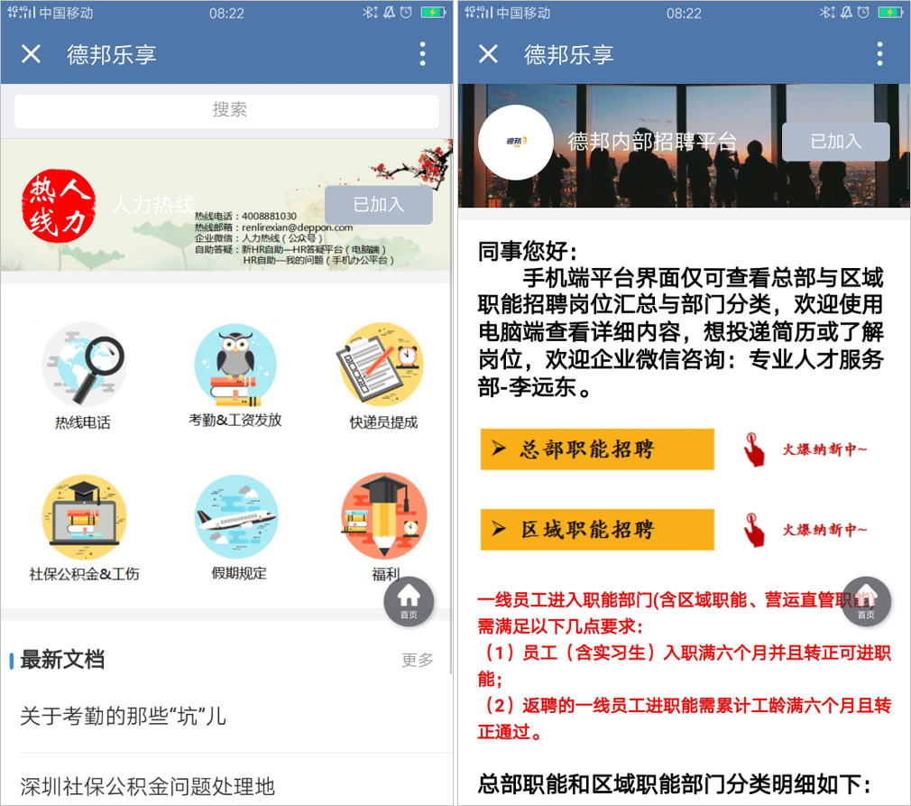 德邦:腾讯乐享给我们打造一个16万人的互动沟通平台引言:德邦人是年轻的一代人,也是努力奋斗的一代人,他们保持着青春,充满着活力,对于工作总是随时待命,用心解答着客户的每一个问题。德邦跟腾讯乐享合作的愿景就是希望打造一个14万人都能够使用的统一沟通平台,服务于14万人。 作为拥有十余万员工的服务类企业,德邦快递非常注重制度的宣贯,一直坚持早晨学习业务标准的习惯,每天早上员工将打印好的标准文件打印出来,大家学习并讨论。自从使用乐享,早安晨会实现线上化学习,方便便捷。 物流行业或者说快递行业,司机和快递员占比较大。每天接触最多的是客户和手上的系统,需要了解更多的业务知识,系统使用操作等,乐享平台创建自己的乐问,员工有问题都可以在里面问,其他人也进行分享自己的心得或者告诉知识点,学习更轻松。