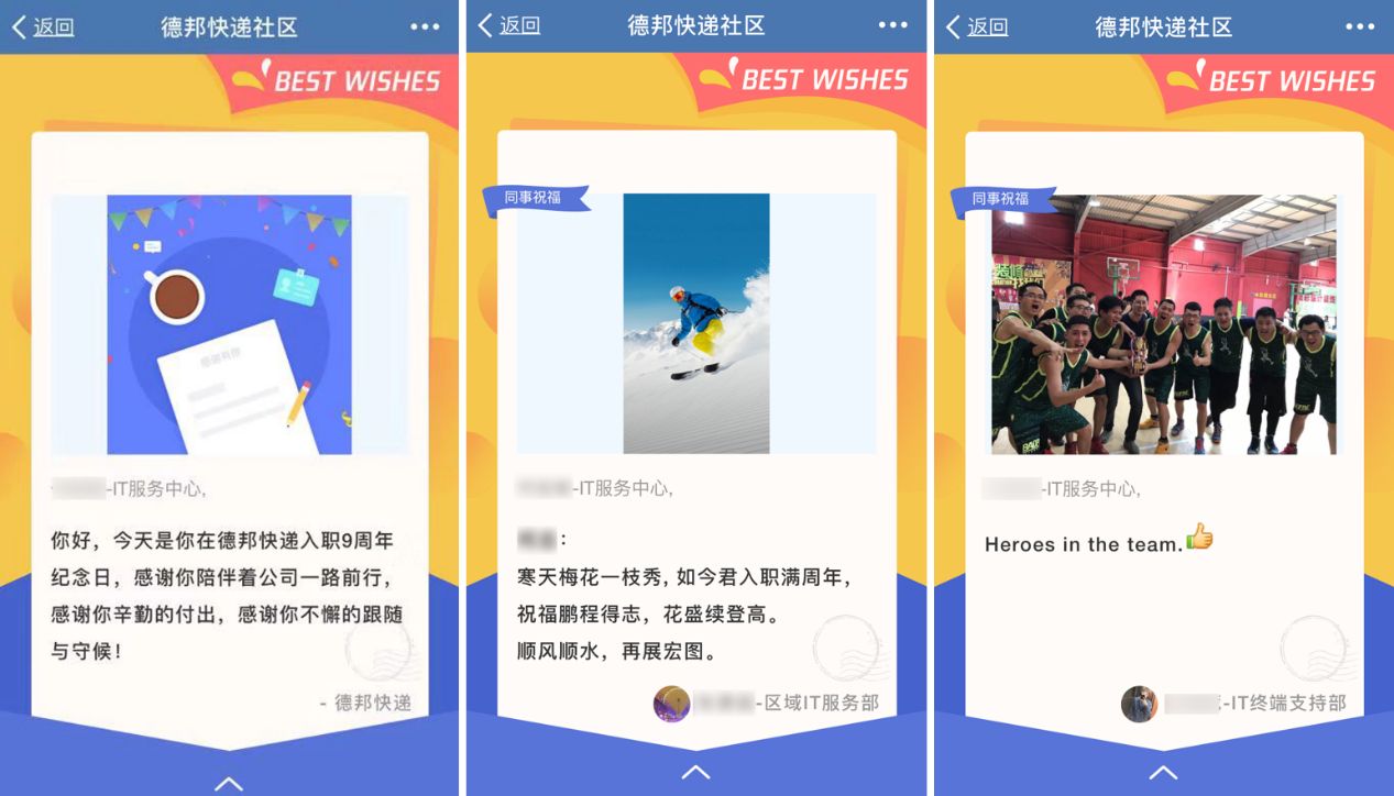 这些应用给德邦带来了三个关键词的改变: 首先,“便捷”:比如早安晨会,以前都是通过打印机打印出来再进行学习,而通过使用腾讯乐享,可以进行线上化学习,学习过程中还能进行评论,负责人也能统计到哪些人学习了,相比之前既节省成本又便于管理。 其次,“安全”:以前学习内容都是通过微信群进行分享,但有将公司的文件截图传出去的风险。通过使用腾讯乐享,德邦不仅可以在发送文件的时候限制可查看人员,而且截屏有水印,防止外传,在一定程度上保障了公司的信息安全。 最后,“友好”:腾讯乐享可以协助做公司内部的调研、进行生日/节日祝福的推送等,在帮助提高工作效率的同时,也提升了员工的归属感。